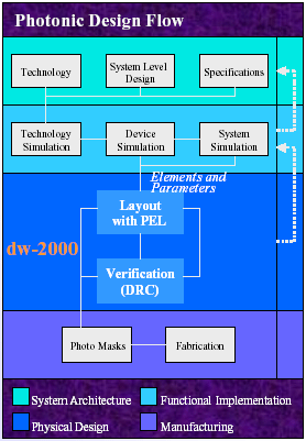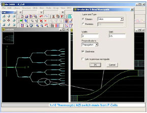 PELに収録されている全15種21個にも及ぶエレメントはユーザー定義可能なP-Cellにて、生産者の要求を満たすフォトニックデザインのスタンダートとして全て記述されております。ユーザーは単に自らのデザイン要求に合うエレメントを選択し、パラメータを設定、そしてそれをレイアウトエリアに配置するだけです。もちろん各エレメントのパラメータは配置後も自由に変更することが可能です。