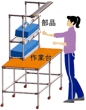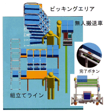ピッキングエリアからの部品供給と、部品製造セル(屋台)での組立の支援が可能です。