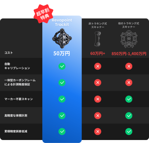 - 同クラス最安価格で産業用高精度3Dスキャナーを実現