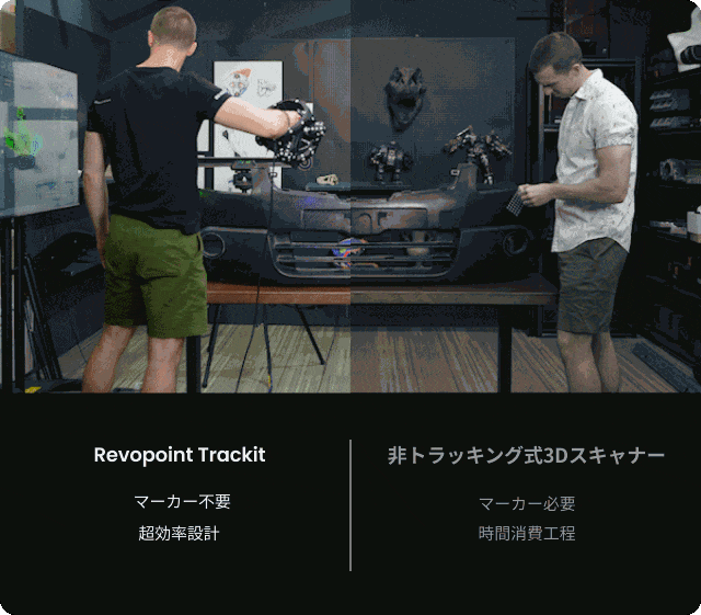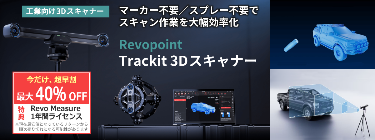 「Revopoint Trackit」は、マーカー不要の産業用スキャニング向けに設計された、先進の光学トラッキング式及びブルーレーザー3Dスキャンシステム。